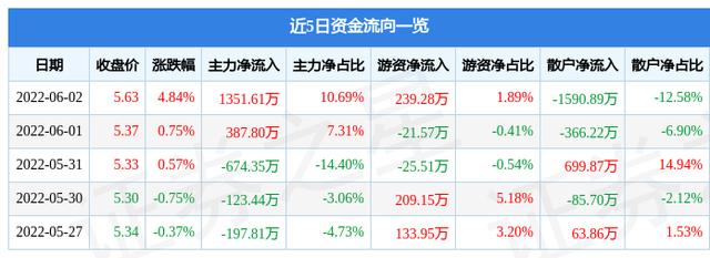 资金流向数据方面,6月2日主力资金净流入1351.61万元,游资资金净流入239.28万元,散户资金净流出1590.89万元。