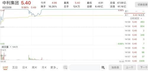 5月19日,中利集团盘中封涨停板,最终收报5.4元/股,总市值47.08亿元。