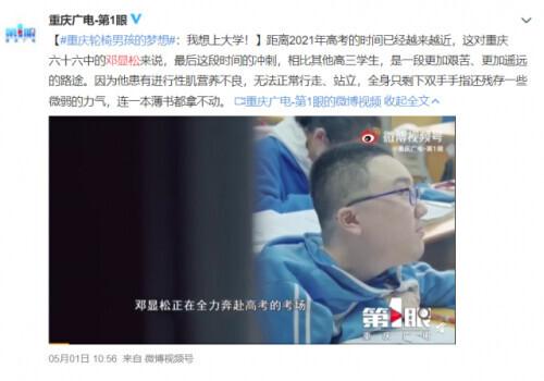 原文标题:“渐冻人”考生高考592分!他却有个担心……