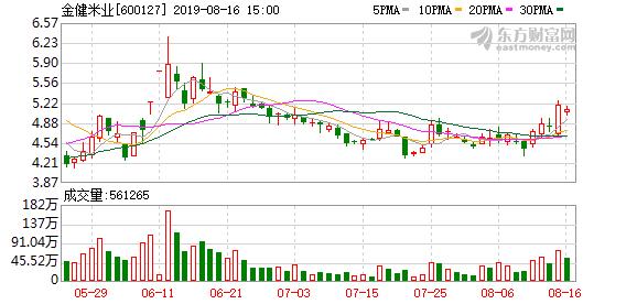 2020年2月14日,金健米业A股开盘4.33元,全日上涨1.81%,股价收报4.50元。自2020年2月12日以来,金健米业收盘价连续三日收于年线(250日均线)之上。