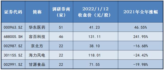 此外,京北方、海力风电、甘源食品等均被22家券商密集调研。