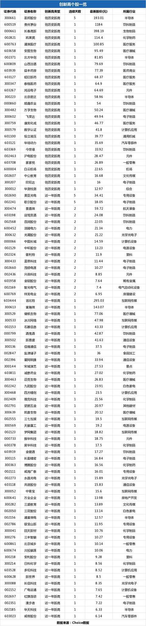 从全市场来看,9月24日沪深两市共有美亚光电、歌尔股份、大博医疗等82只股票价格创近一年新高。其中美亚光电股价已连续五日创下近一年盘中最高价。
