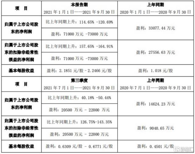 根据酒鬼酒日前公布的业绩预告,2021年前三季度公司预计实现营收26.38亿元左右,同比增长134%左右;预计归母净利润达7.1-7.3亿元,同比增长114.65%至120.69%;预计扣非归母净利润同比增长157.65%至164.91%。