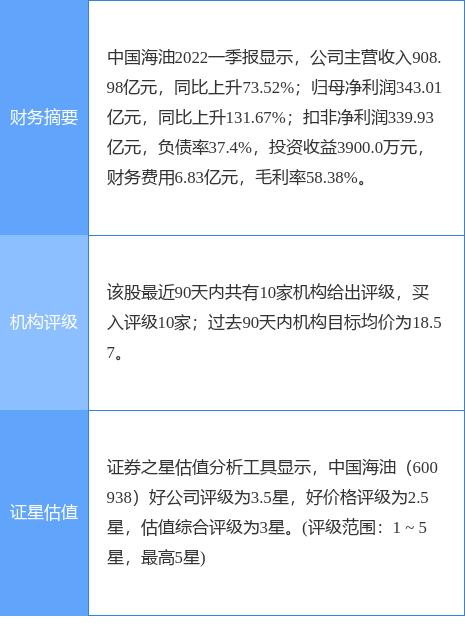 本文摘要:5月27日盘中消息,14点34分中国海油(600938)封涨停板。目前价格18.5,上涨9.99%。其所属行业油气开采目前上涨。领涨股为中国海油。该股为石油化工,天然气概念热股,当日石油化工概念上涨1.25%。资金流向数据方面,5月26日主… …