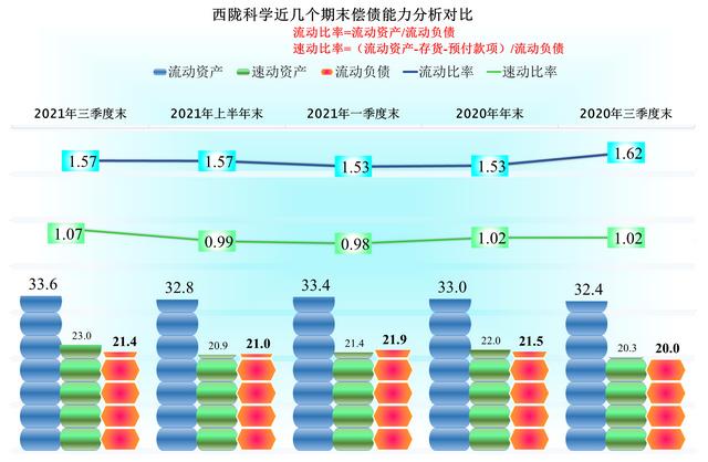 别看长期盈利能力一般,西陇科学的偿债能力倒是没有什么大的问题,1.57的流动比率和1.07的速动比率,控制得相当不错。