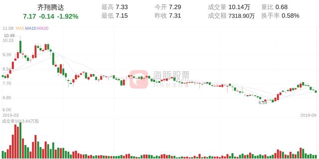 齐翔腾达今日下跌1.92%,股价为7.17元,成交金额为7318.90万元,成交10万手,换手率为0.58%。
