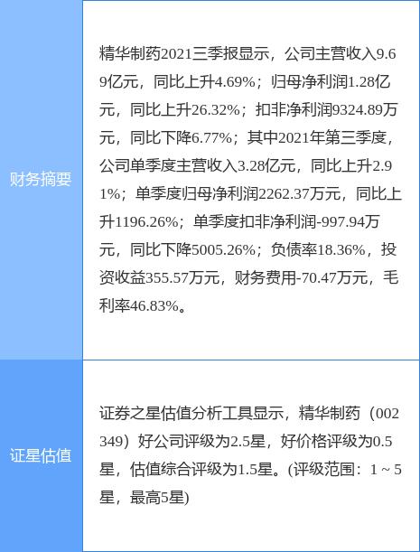 本文摘要:3月24日盘中消息,10点26分精华制药(002349)封涨停板。目前价格26.18,上涨10.0%。其所属行业中药目前下跌。领涨股为太龙药业。该股为新冠药物,PD-1抑制剂,化学原料药概念热股,当日新冠药物概念上涨2.05%,PD-1抑制… …