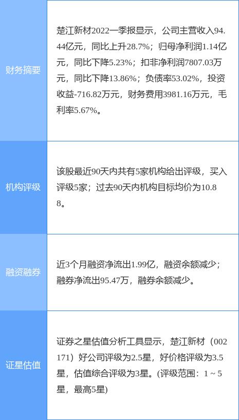 本文摘要:5月11日盘中消息,11点26分楚江新材(002171)封涨停板。目前价格8.05,上涨9.97%。其所属行业工业金属目前上涨。领涨股为楚江新材。该股为氮化镓,碳化硅,第三代半导体概念热股,当日氮化镓概念上涨5.03%,碳化硅概念上涨4.7… …