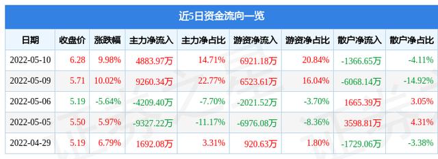 资金流向数据方面,5月10日主力资金净流入4883.97万元,游资资金净流入6921.18万元,散户资金净流出1366.65万元。