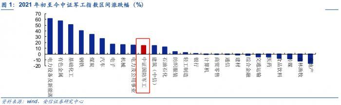 二三四季度板块表现持续提升。2021年初至今,中证军工指数上涨15.04%,涨幅行业排名第10 位。