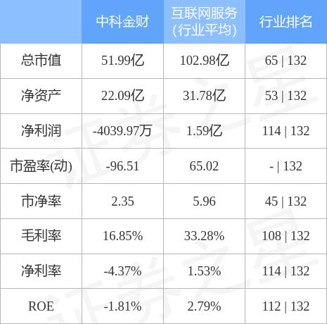 中科金财主要指标及行业内排名如下: