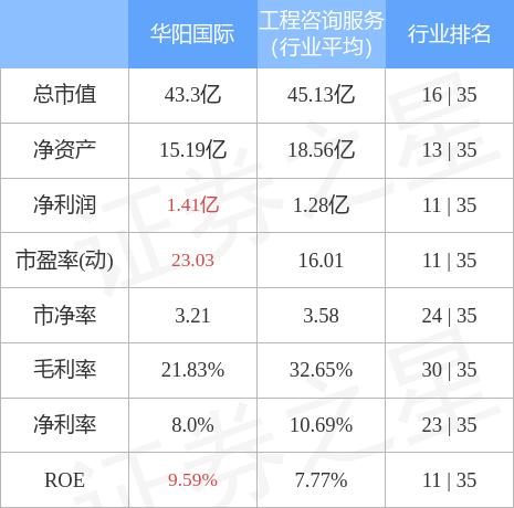 华阳国际主要指标及行业内排名如下: