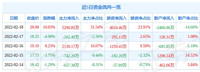 资金流向数据方面,上个交易日主力资金净流入5290.85万元,游资资金净流入4010.46万元,散户资金净流出2460.06万元。近5日资金流向一览见下表:
