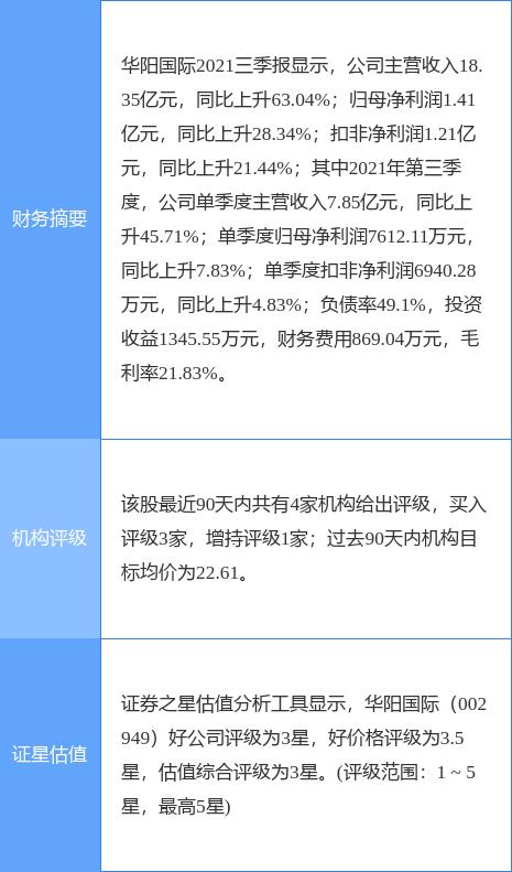 本文摘要:2月21日盘中消息,9点55分华阳国际(002949)封涨停板。目前价格22.09,上涨10.01%。其所属板块工程咨询服务目前上涨。领涨股为华建集团。资金流向数据方面,上个交易日主力资金净流入5290.85万元,游资资金净流入4010.4… …