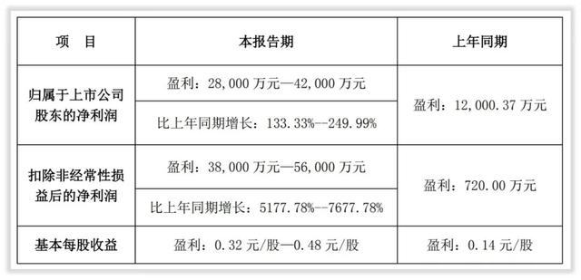 2021年预计扣非净利润3.8亿元至5.6亿元,同比增长5177.78%至7677.78%。