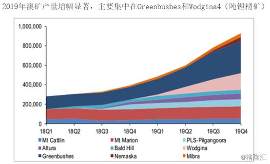另外,南半球主要生产的是卤水锂,其中,智利阿根廷分别占全球锂盐湖产量57%和23%,占全球锂矿产量19%和8%。据中国产业信息,2019年依旧将是锂矿项目产量大增的一年,主要是由于澳洲矿山扩产