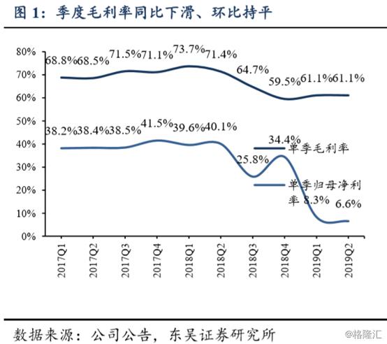 单季度来看,Q2公司实现营收12.53亿元,同比下降22.71%,环比下降6.32%;实现归母净利润0.82亿元,同比下降87.35%,环比下降26.22%。毛利率方面,Q2为61.07%,同比下降10.31%,环比上升0.01%。