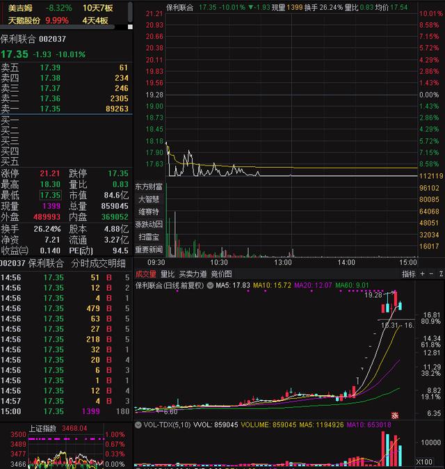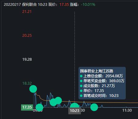 章盟主第二个操作是保利联合,卖出1.17万手,均价17.50,合计2054万。