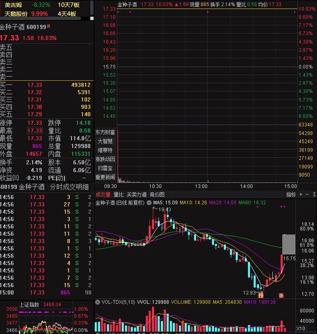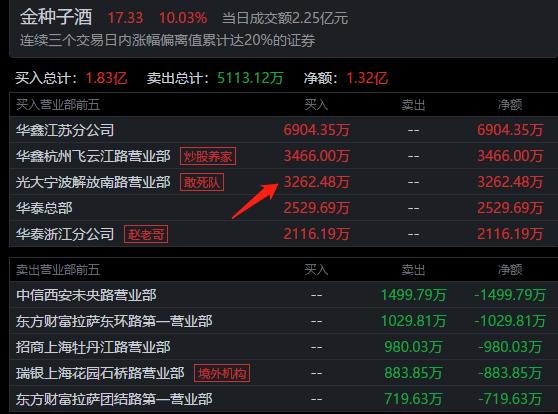 看好白酒方向,近3个交易日买入金种子酒3262万。