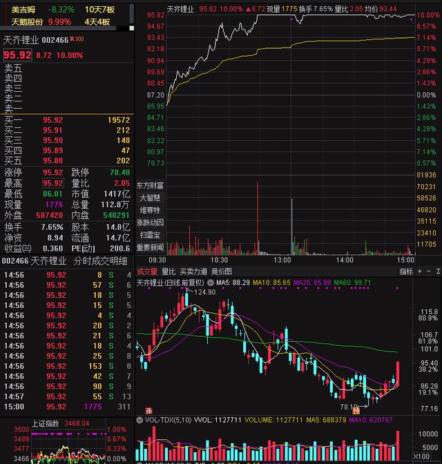 最后,还是围绕锂电池操作,买入天齐锂业2.15万手,均价95.85,合计2.06亿。