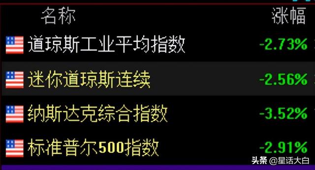 美股道琼斯指数跌2.73%,纳斯达克则跌3.52%。