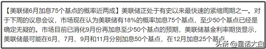 但现在美联储6月加息75个基点的概率,就直接上升到了18%。