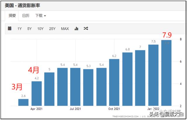 而如果接下来美国通胀率继续保持环比增长态势,那么美国通胀率在10月之前是有可能直奔两位数的。
