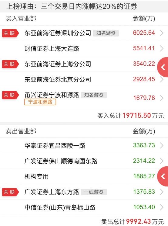 知名游资现身 “东亚三剑客”1.25亿抱团买入