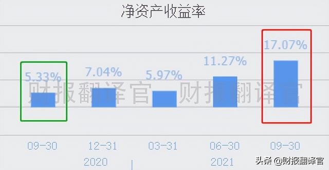 到了2021年第三季度,公司的净资产收益率竟然达到了17.07%,同比增长了220%。