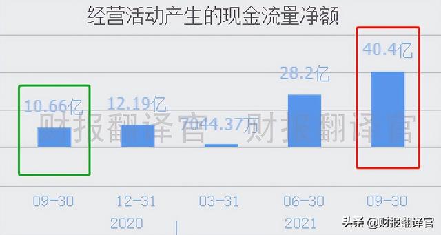 2021年第三季度,公司的净利润为20.25亿元,而同期该企业因经营活动而实际赚到的现金净额却高达40.4亿元,同比增长了279%。
