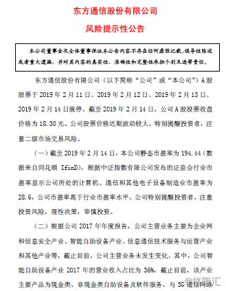 这一点,我们从2月14日东方通信发布的风险提示中得到印证。