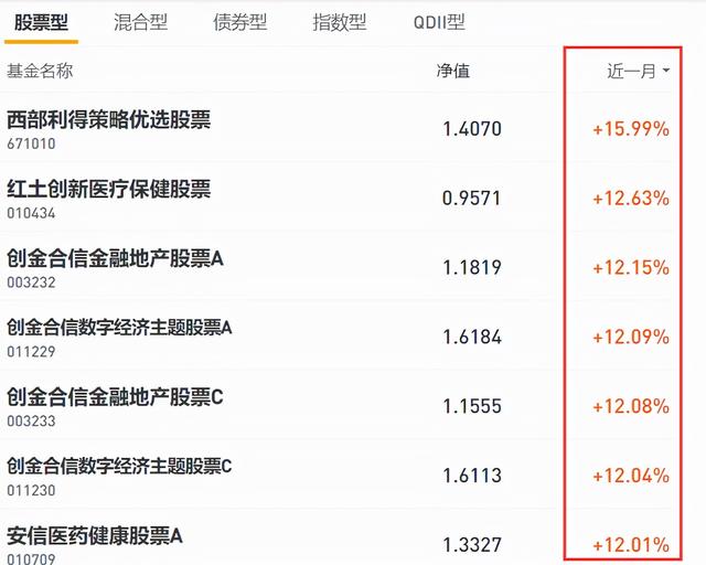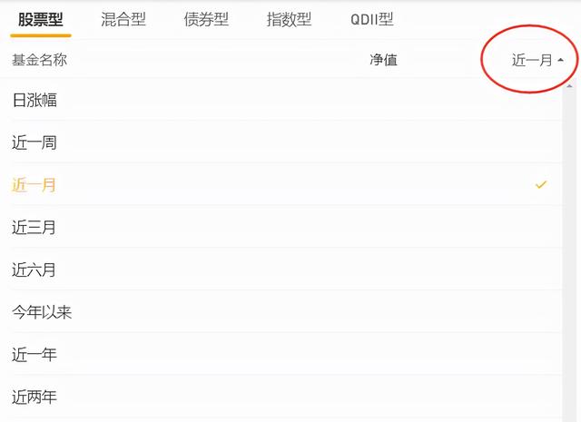 首先是【业绩排行】上,有股票型、混合型、债券型等基金类别,然后根据你选择的时间参考,比如近一个月、或者是近三月,今年以来等等时间筛选出,净值从高到低排列
