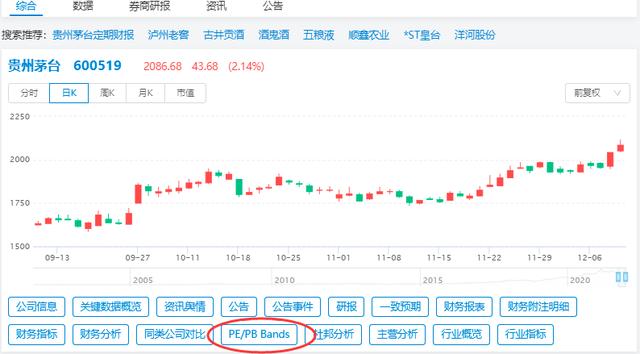 输入股票名称,在【综合】下方有【PE/PB Bands】选项,点击进入