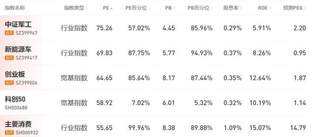 比如说新能源车指数,可以查看它过去几年时间段中估值的走势,非常具有参考价值。