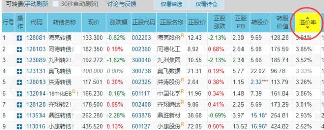 - 以其中可转债为例,可以查看所有可转债的相关信息,转债对应的正股代码,正股的估值、涨跌幅、转股价,以及当前的折价率和溢价率等,除此之外,各种相关公告信息也是一应俱全,非常实用的一个工具。