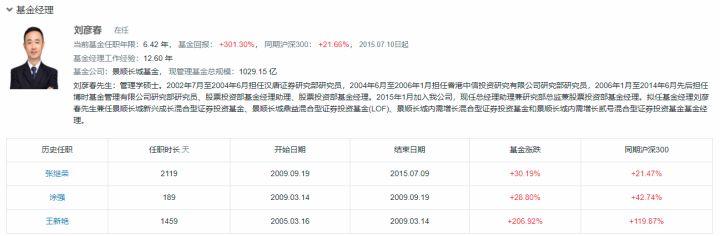3)比如在【基金经理】一栏中,可以查看该基金经理的任职经理和管理年限,也可以查看目前的在管产品