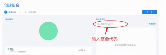 1)进入创建组合界面,输入想要做成组合的基金代码