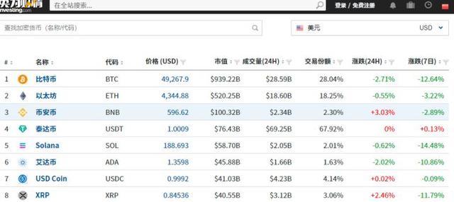 3)除了外汇、期货、股票外,还有加密货币的相关信息也可以查看,算是对国内一些平台难以查到的资料作为一个补充。