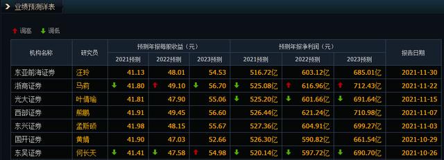 6)最后是【盈利预测】一栏,系统会自动整理出市面上的券商机构给予的未来盈利预测,可以作为投资者的一个参考