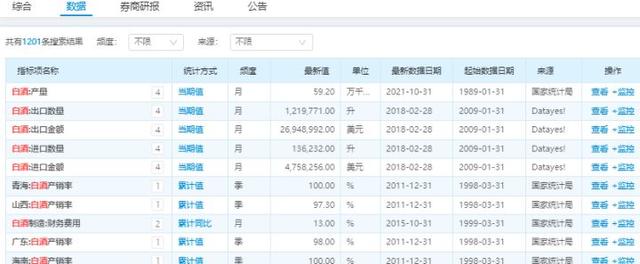 2)【数据】一栏中,可以查询相关产量,地区产销率,进出口数量等信息