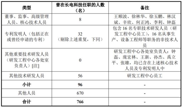 根据甬矽电子在“第一轮审核问询函的回复”资料显示,截至 2021年 5 月 15 日,发行人共有员工 2,227 人,其中来自长电科技 (宁波)股份有限公司(含其子公司,下同)的人员达到了766 人,占甬矽电子总员工的比例为34.40%。其中生产人员 633 人,占来自长电科技的总人数比例为82.64%。而在甬矽电子全部的 282 名研发 人员中,则有77人是来自长电科技,占比达27.30%。而且,甬矽电子共有8名董监高及核心技术人员来自长电科技,占比将近50%,还有32名专利发明人曾在长电科技任职。
