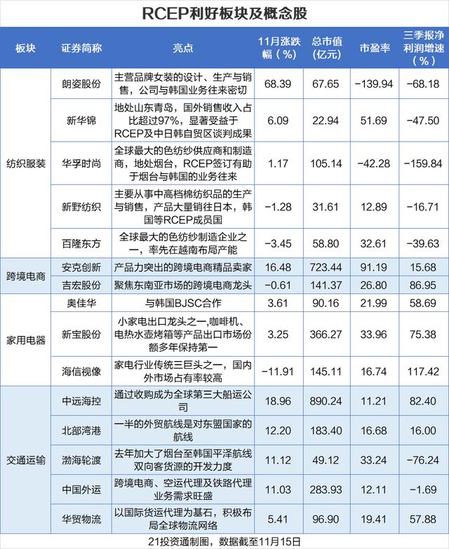 华西证券则认为RCEP签订将极大促进南方省份特别是广西与东盟国家的贸易发展,北部湾港(000582.SZ)是最纯受益标的,华西证券给予21.6元/股的目标价。