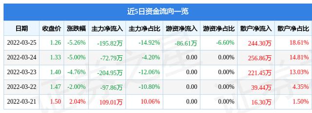 资金流向数据方面,上个交易日主力资金净流出195.82万元,游资资金净流出86.61万元,散户资金净流入244.3万元。近5日资金流向一览见下表: