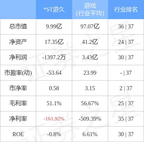 *ST游久主要指标及行业内排名如下: