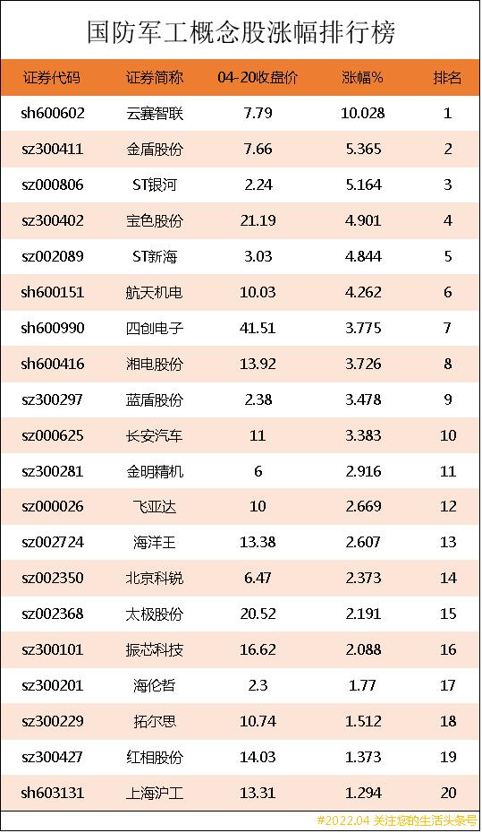 原文标题:国防军工概念股涨幅排行榜|国防军工上市公司龙头股有哪些?