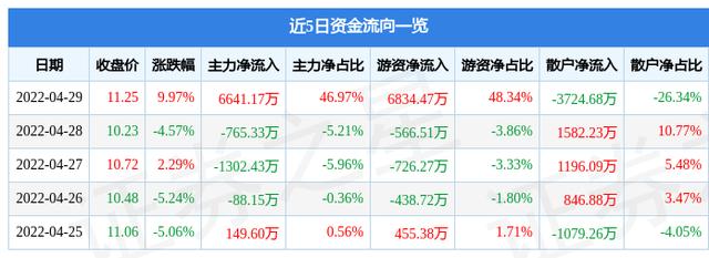 资金流向数据方面,4月29日主力资金净流入6641.17万元,游资资金净流入6834.47万元,散户资金净流出3724.68万元。