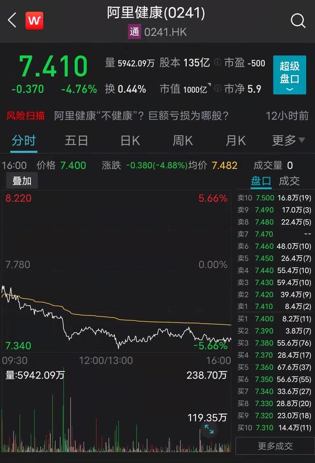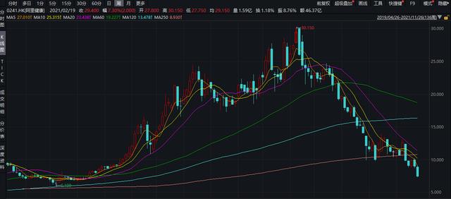原文标题:上半年由盈转亏,阿里健康股价较历史高位超75%创新低