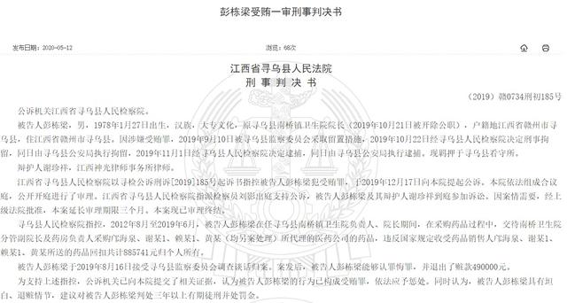 本文摘要:近日,一份刑事判决书将一卫生院院长彭某吃医药代表回扣,收受药品回扣归个人所有数额巨大,其行为构成受贿罪的整个过程公之于众。江西省寻乌县人民法院审理查明,2012年8月至2019年6月,被告人彭某在任寻乌县南桥镇卫生院负责人、院长期间,在采购… …