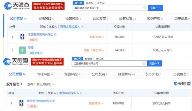 天眼查信息显示,赣州鹭燕医药公司的第一大股东为江西鹭燕医药有限公司,而江西鹭燕医药有限公司为上市公司鹭燕医药股份有限公司的全资子公司。