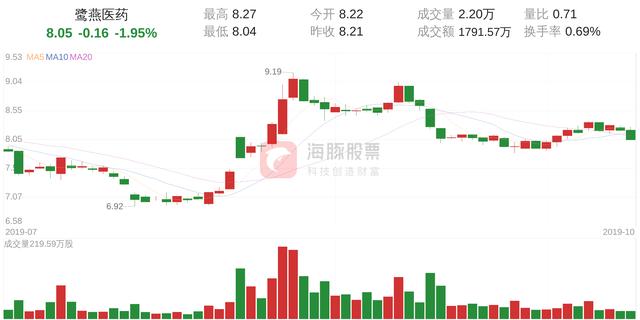 鹭燕医药今日下跌1.95%,股价为8.05元,成交金额为1791.57万元,成交2万手,换手率为0.69%。